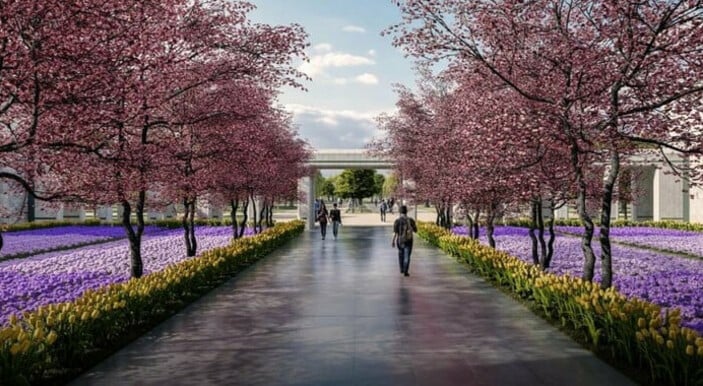 Tamamlandığında dünyanın en büyük yeşil alanlarından biri olacak millet bahçesinde, 132 bin 500 ağaç olacak.