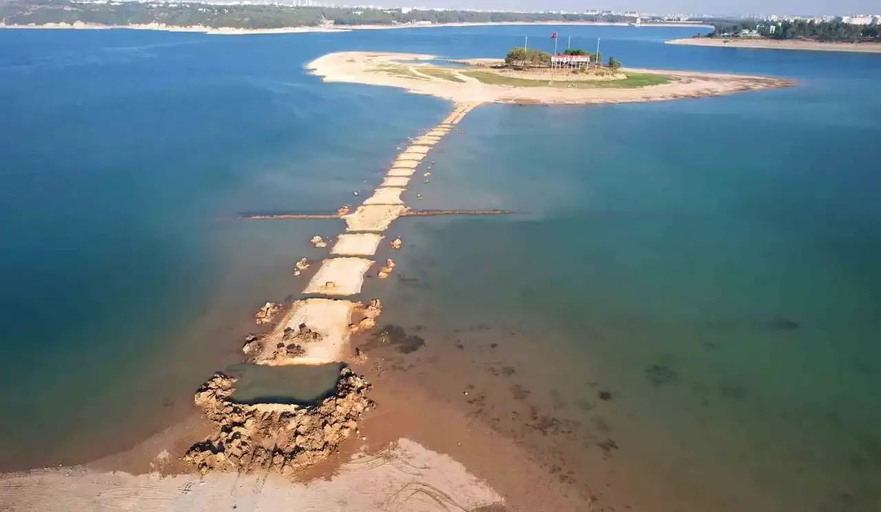 Türkiye’nin en büyük ve en bereketli tarım arazilerinin bulunduğu Adana’da yağmur yağmamasından dolayı hem sulamada hem de enerjide kullanılan Seyhan Baraj Gölü’nde sular yaklaşık 500 metre çekildi. Suların çekilmesiyle birlikte Sevgi Adası’na bağlantı sağlayan yol da ortaya çıktı.