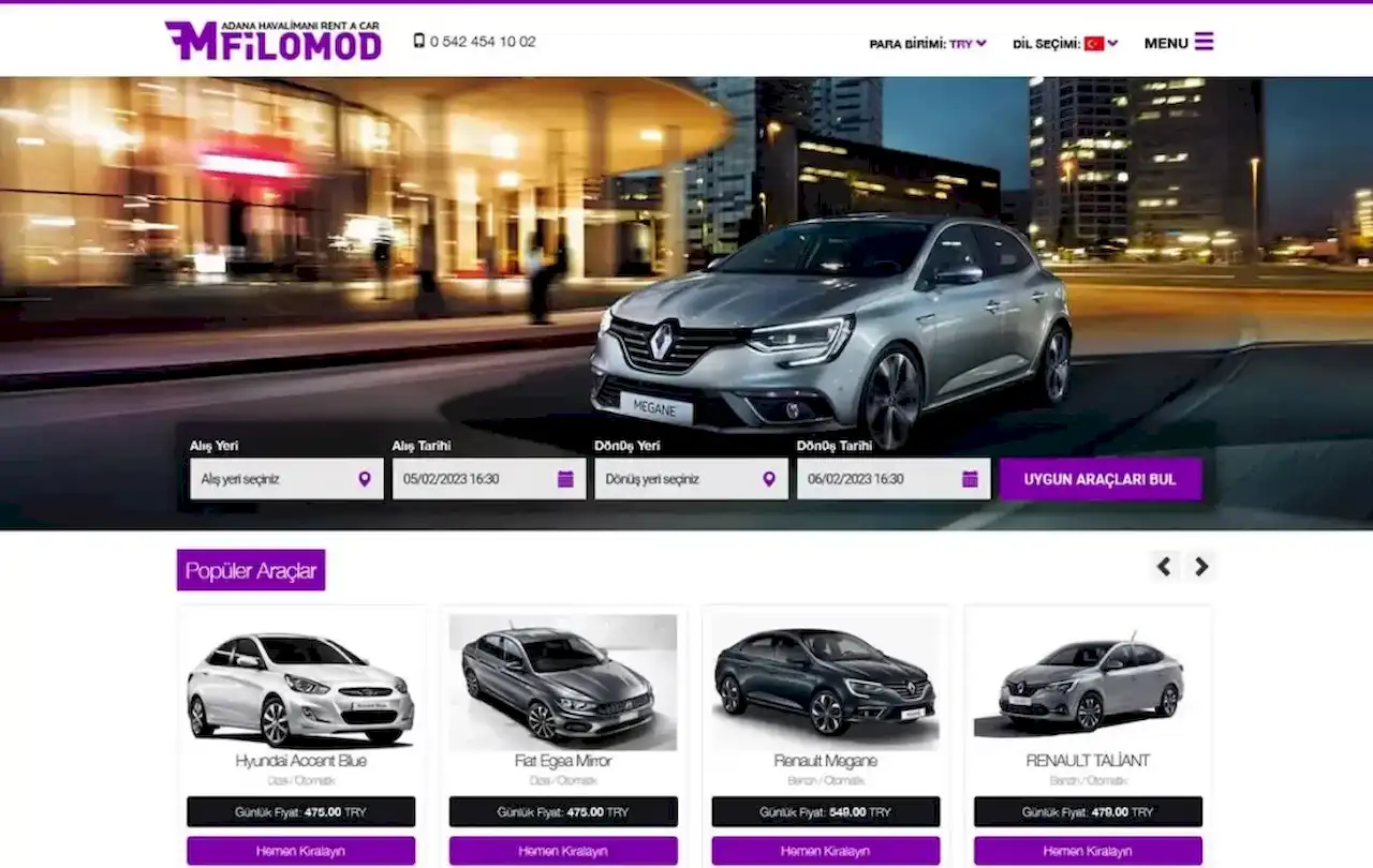 Adana da faaliyet gösteren firmamız Adana araba kiralama, Adana araç kirama, Adana Rent a car, Adana oto kiralama olarak adlandırılan hizmetleri Ekonomik sınıftan lüx sınıfa kadar birçok otomobil, VİP ve Suv araçlarıyla sizlere en iyi kiralama hizmetini verebilmek için yoğun ve titiz bir şekilde çalışmaktadır.