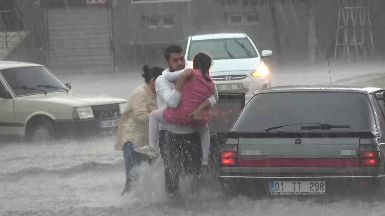 Meteorolojinin uyardığı sağanak yağış ve dolu Ramazan Bayramı'nın ilk günü Adana'da etkili oldu.