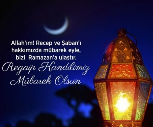 Resulullah (sav) şöyle buyuruyor; "Beş gece vardır ki, o gecelerde yapılan dua reddolunmaz; Cuma gecesi, Recep ayının ilk gecesi, Şabanın yarısındaki gece (Berat gecesi), Ramazan ve Kurban Bayramı geceleri." Regaip Kandiliniz mübarek olsun.