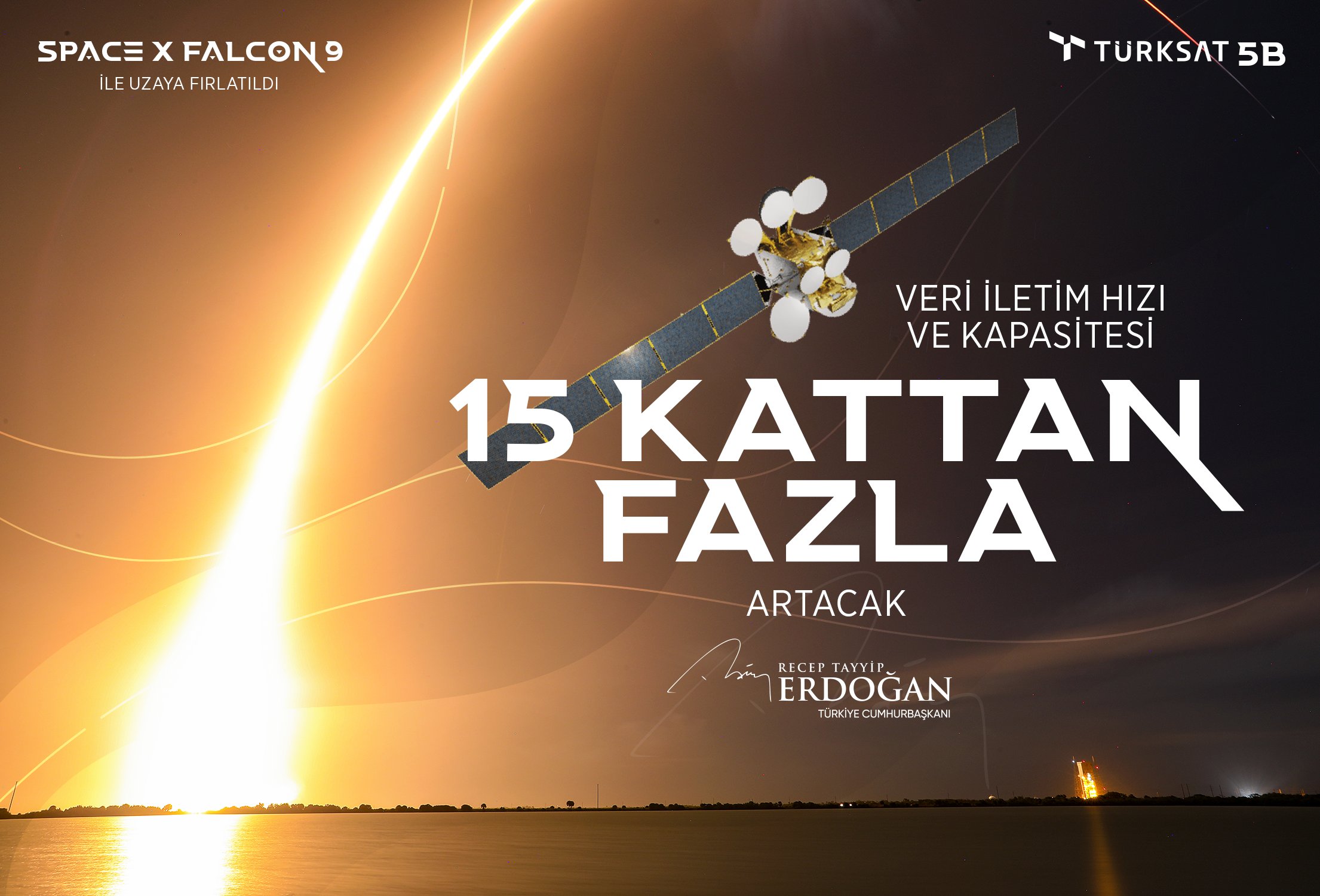 Faydalı yük kapasitesi ve güç değerleriyle Türksat uydu filosunun en güçlüsü olacak Türksat 5B haberleşme uydusu, Türkiye saatiyle 06.58'de Space X firmasına ait Falcon 9 roketiyle uzaya gönderildi.