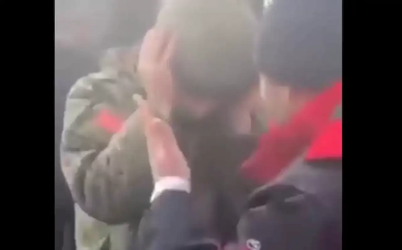 Sosyal medyaya yansıyan görüntülerde teslim olan Rus güçlerinin Ukraynalı siviller tarafından rehin alındığı görüldü.